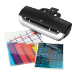 - Laminates an A4 document with a 2x75 micron pouch in just over 20 seconds; laminates ID to A3 size documents