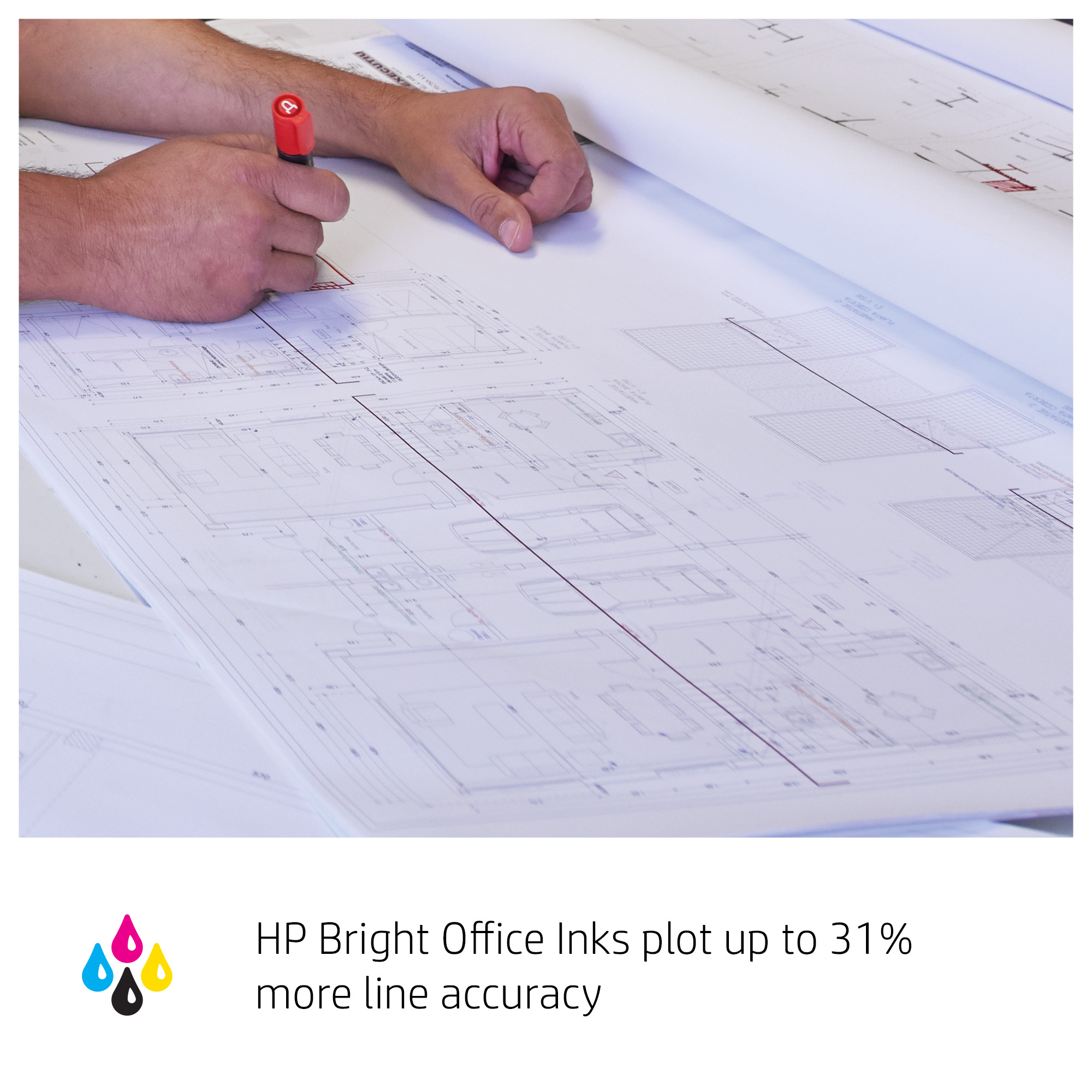 Get high-quality results—HP Bright Office Inks plot up to 31% more line accuracy and up to 65% more gamut.[4]