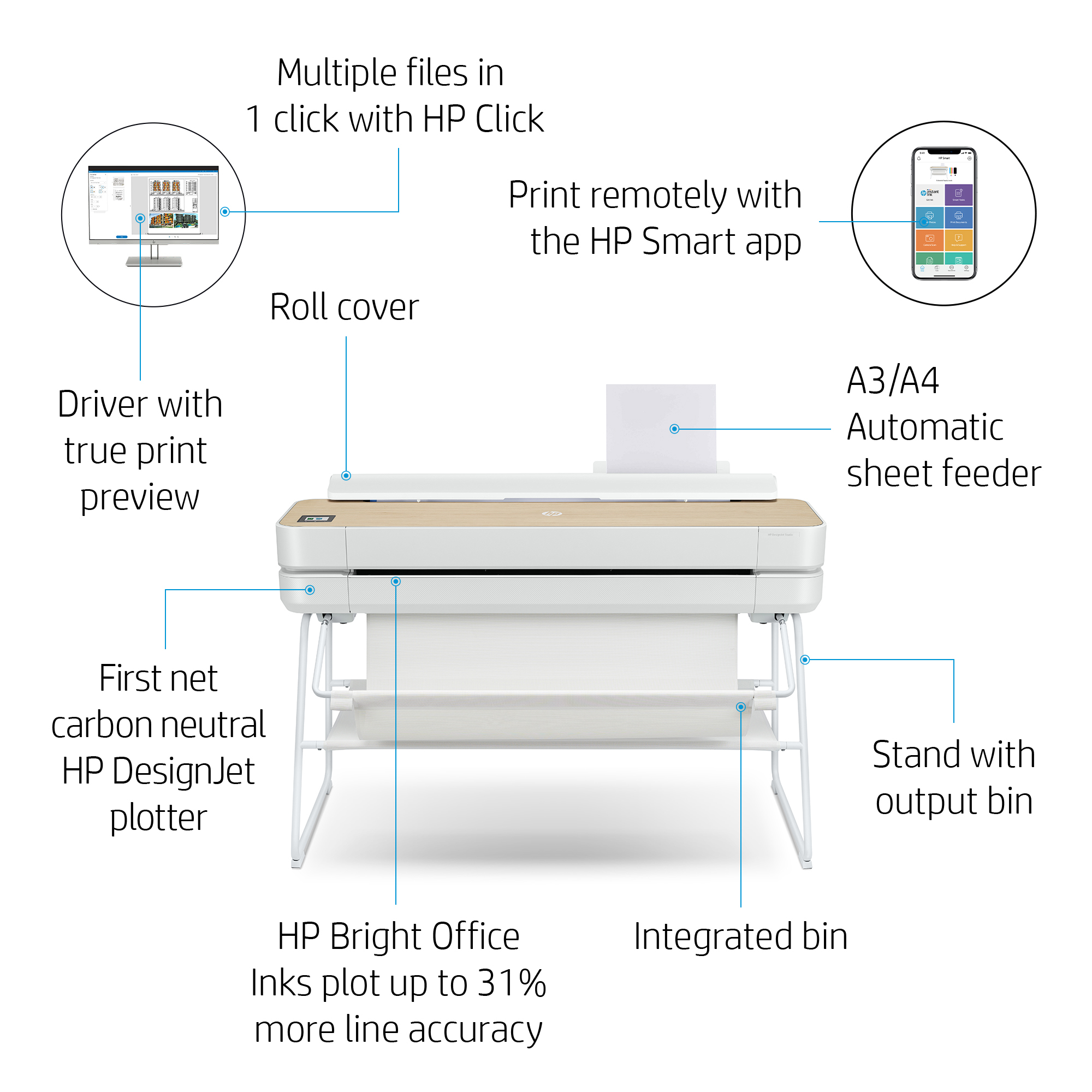 | Bundled software | HP Click App, HP Click Driver for Windows 11, HP Smart app, HP Print Preview for Windows, HP Easy Start, HP DesignJet Utility for Windows, HP Support Assistant |