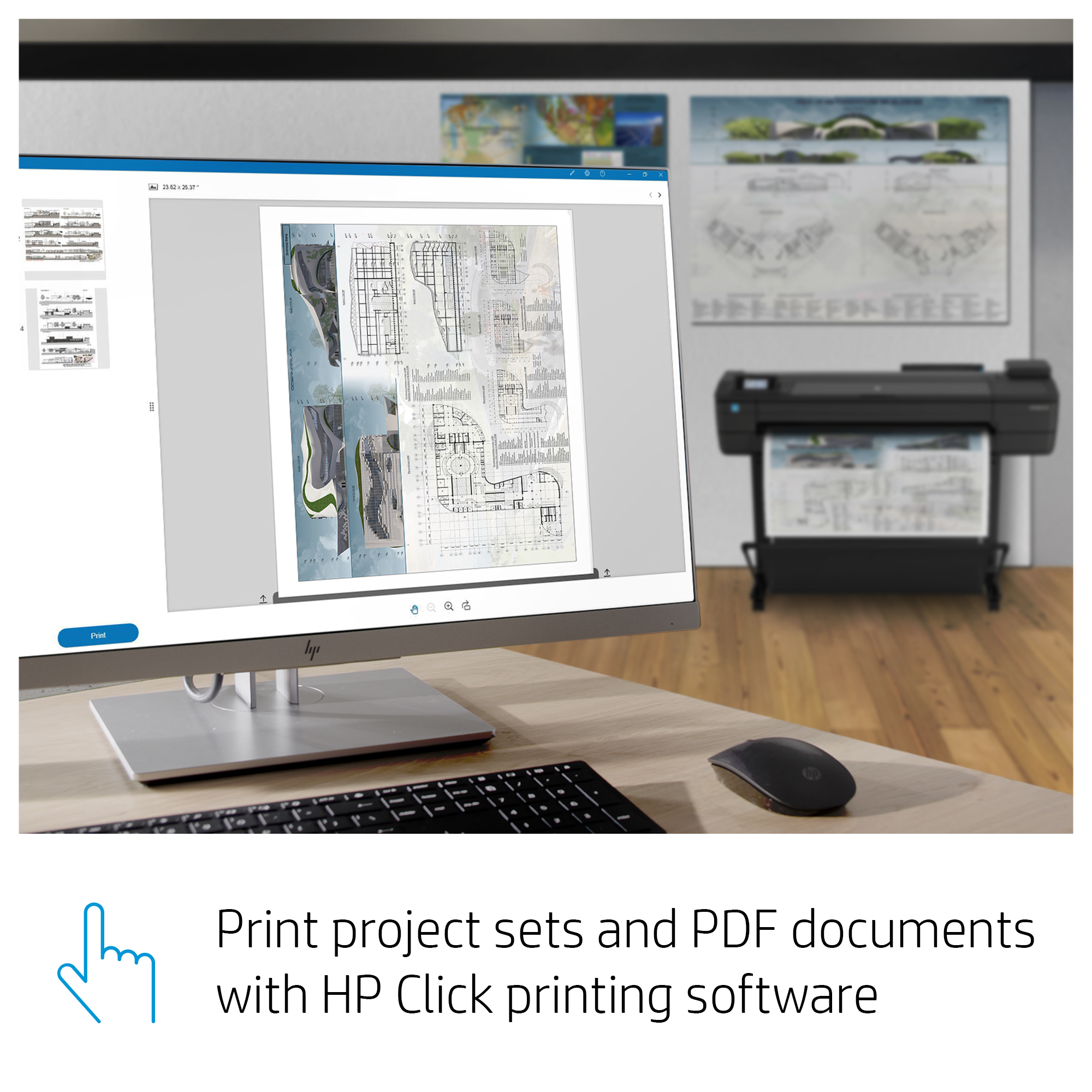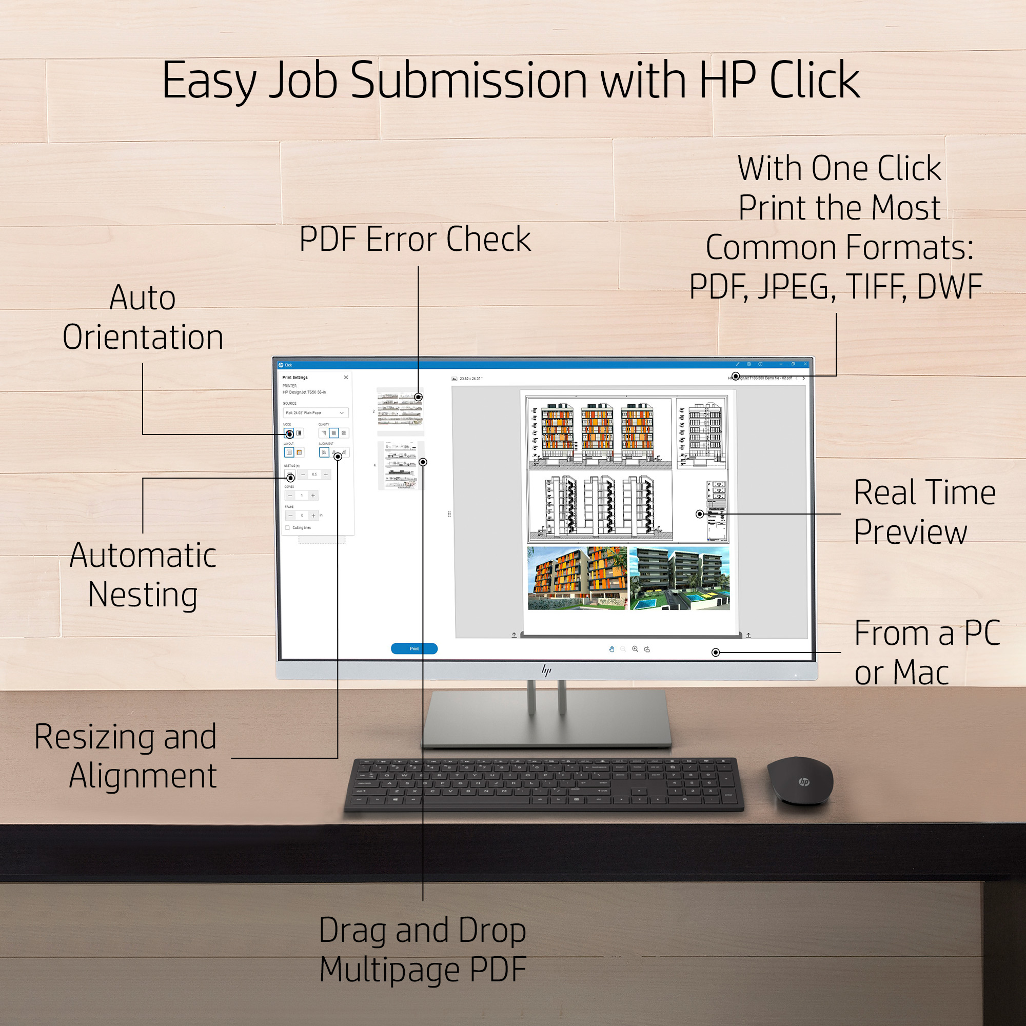 | Bundled software | HP Click, HP Smart app, HP Support Assistant, HP Print Preview for Windows, HP DesignJet Utility for macOS and Windows |