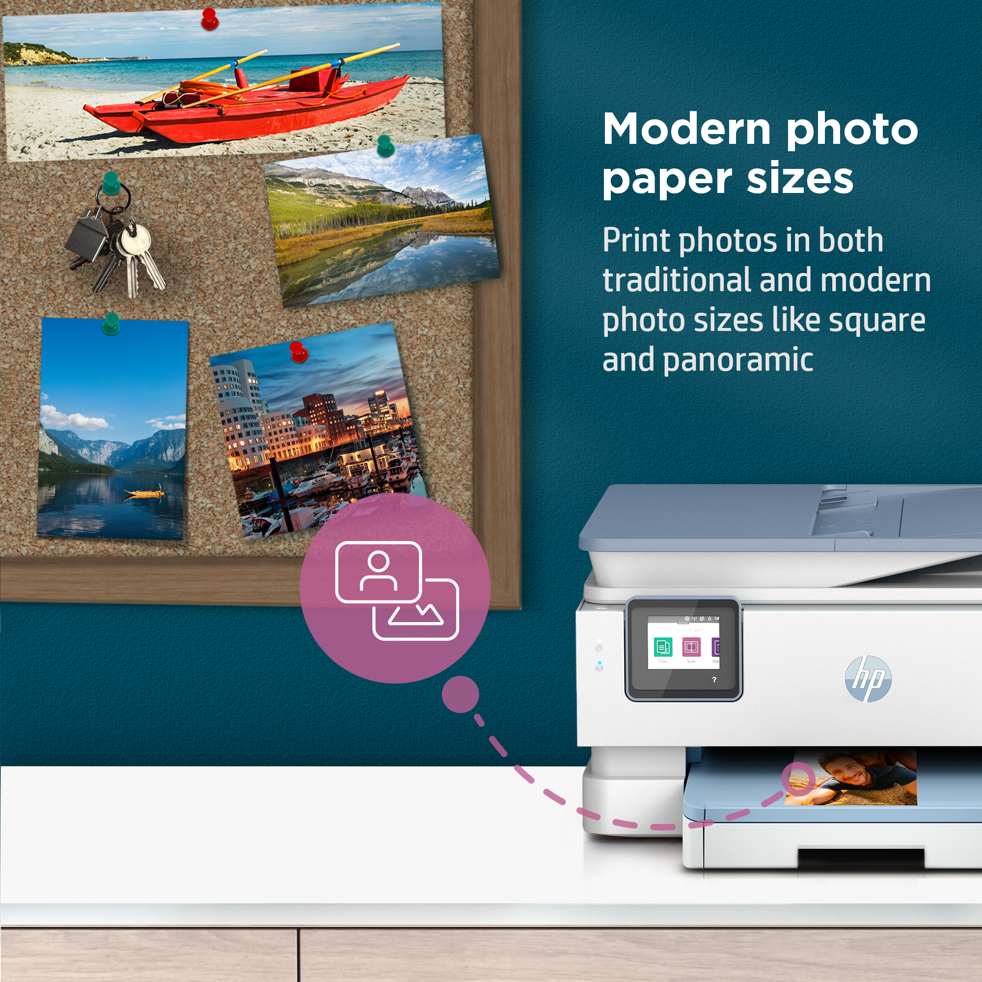 Add a custom message with two-sided 10x15 cm (4x6") photo printing from the HP Smart app.[2]