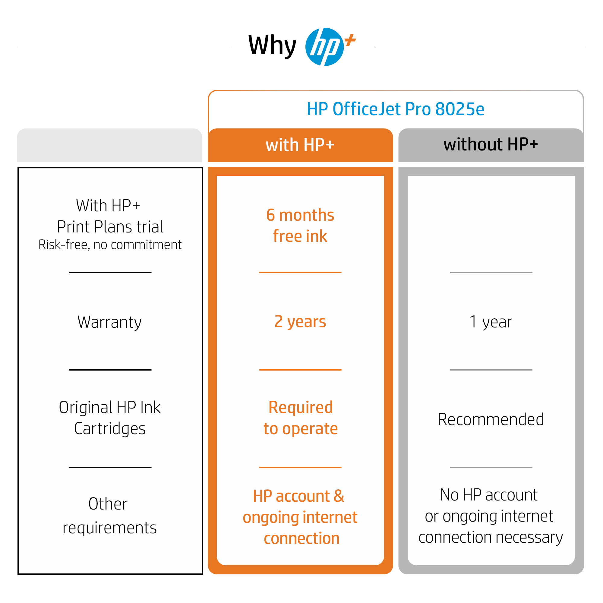 This is an HP+ enabled printer. Choose HP+ at product setup to activate benefits. HP+ requires an HP account, ongoing connection to the internet, and exclusive use of Original HP Ink cartridges for the life of the printer. More at: http://www.hp.com/plus