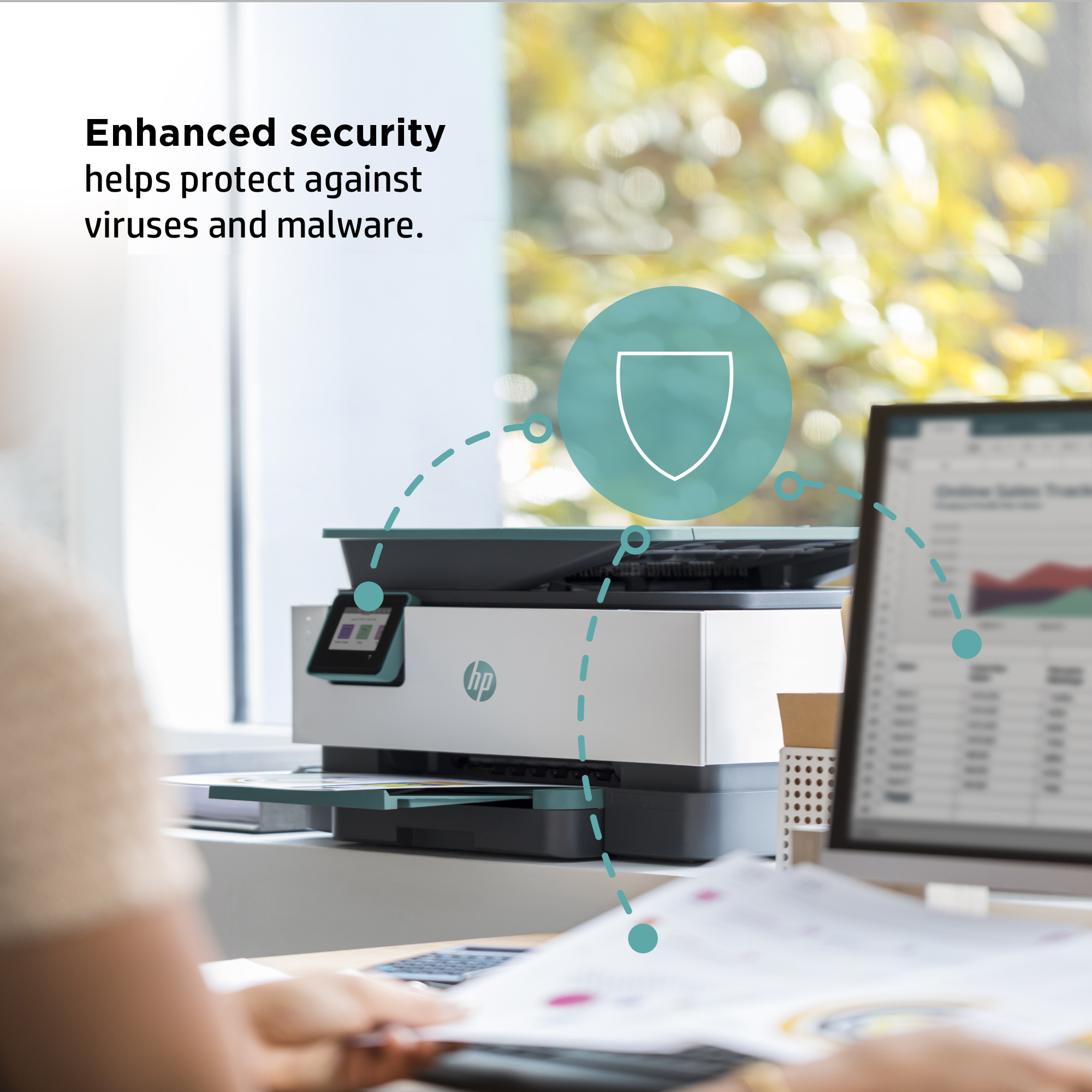 An HP+ printer is ready when you are, more secure and productive than ever.<sup>[11]</sup><sup>[9]</sup>