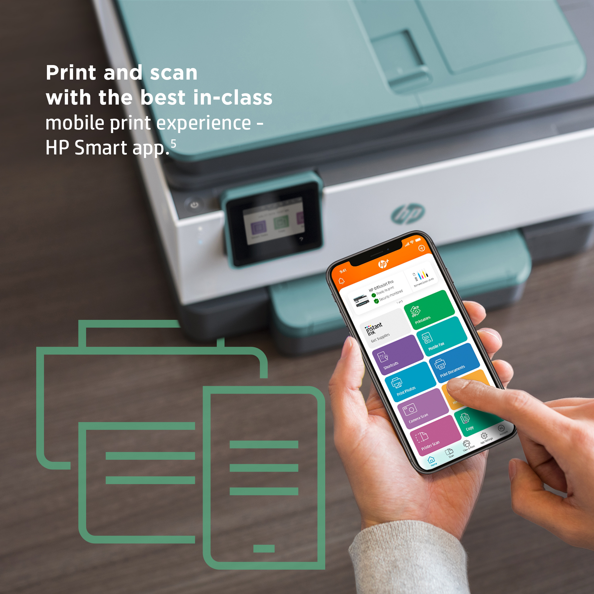 Print and scan from the palm of your hand. Enjoy advanced productivity features for 2 years with HP+.[3]