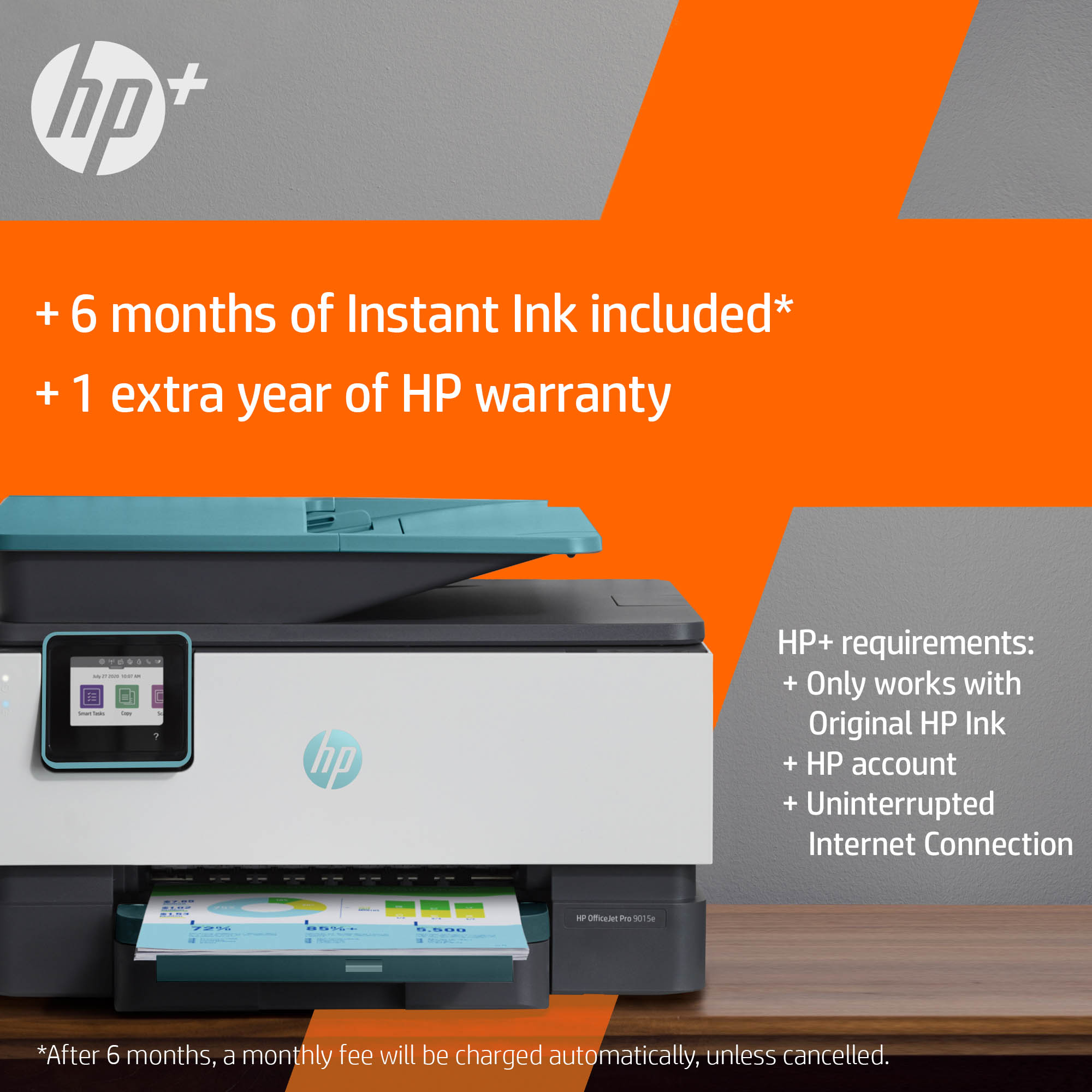 First 6 months of Instant Ink included[10]; after 6 months, monthly fee charged automatically unless cancelled.