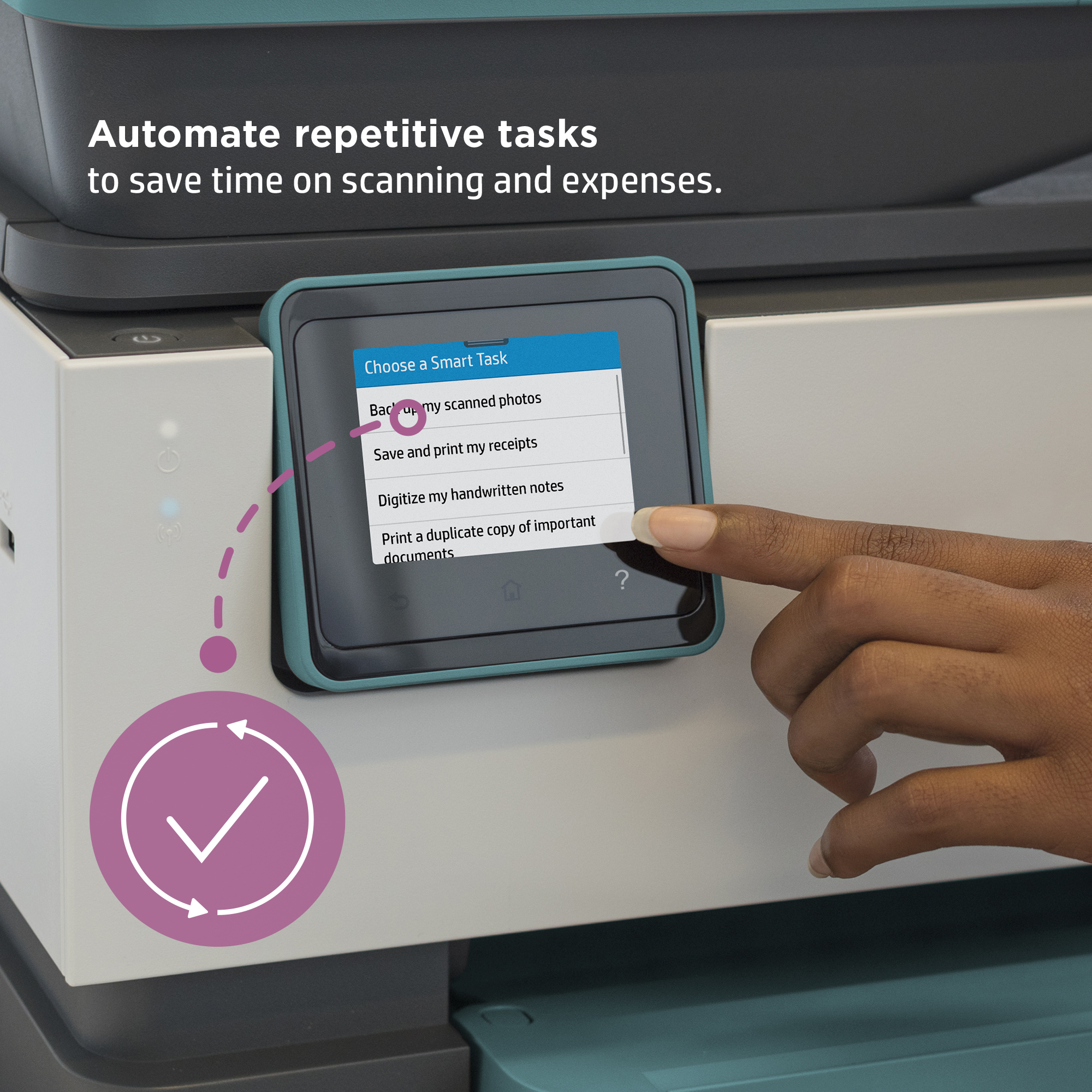 Eliminate steps in repetitive tasks, using Shortcuts.[3] Scan to the cloud, email, and more – in a tap.[3]
