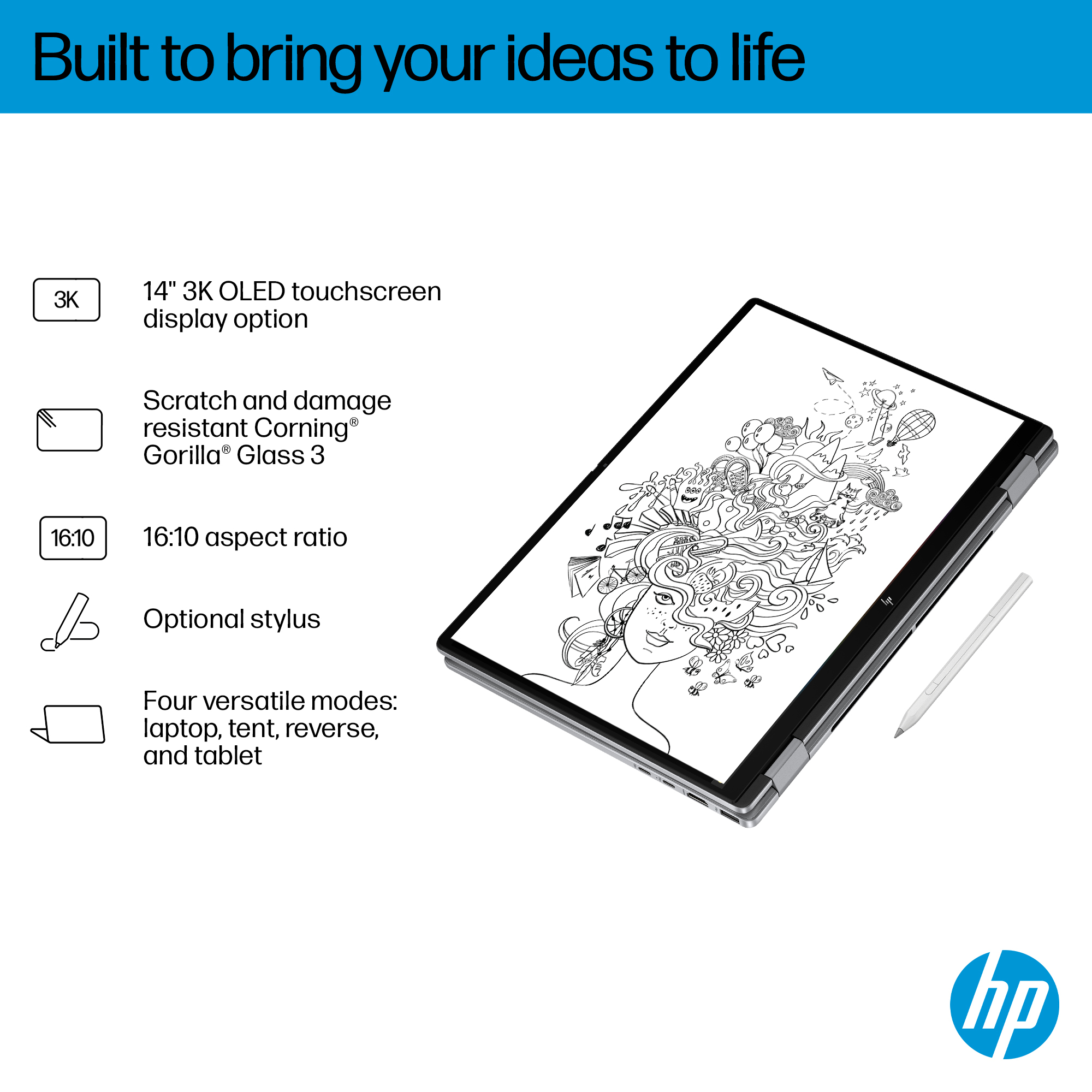 Let creativity reign with the HP OmniBook X Flip 14 Next Gen AI PC. With 4 versatile modes, this thin and light Next Gen AI PC enables you to work and play from anywhere, at any angle. AI-boosted power and speed, along with an all-day, fast-charge battery, keeps you going. While the 14" touch edge-to-edge display provides the best possible view.