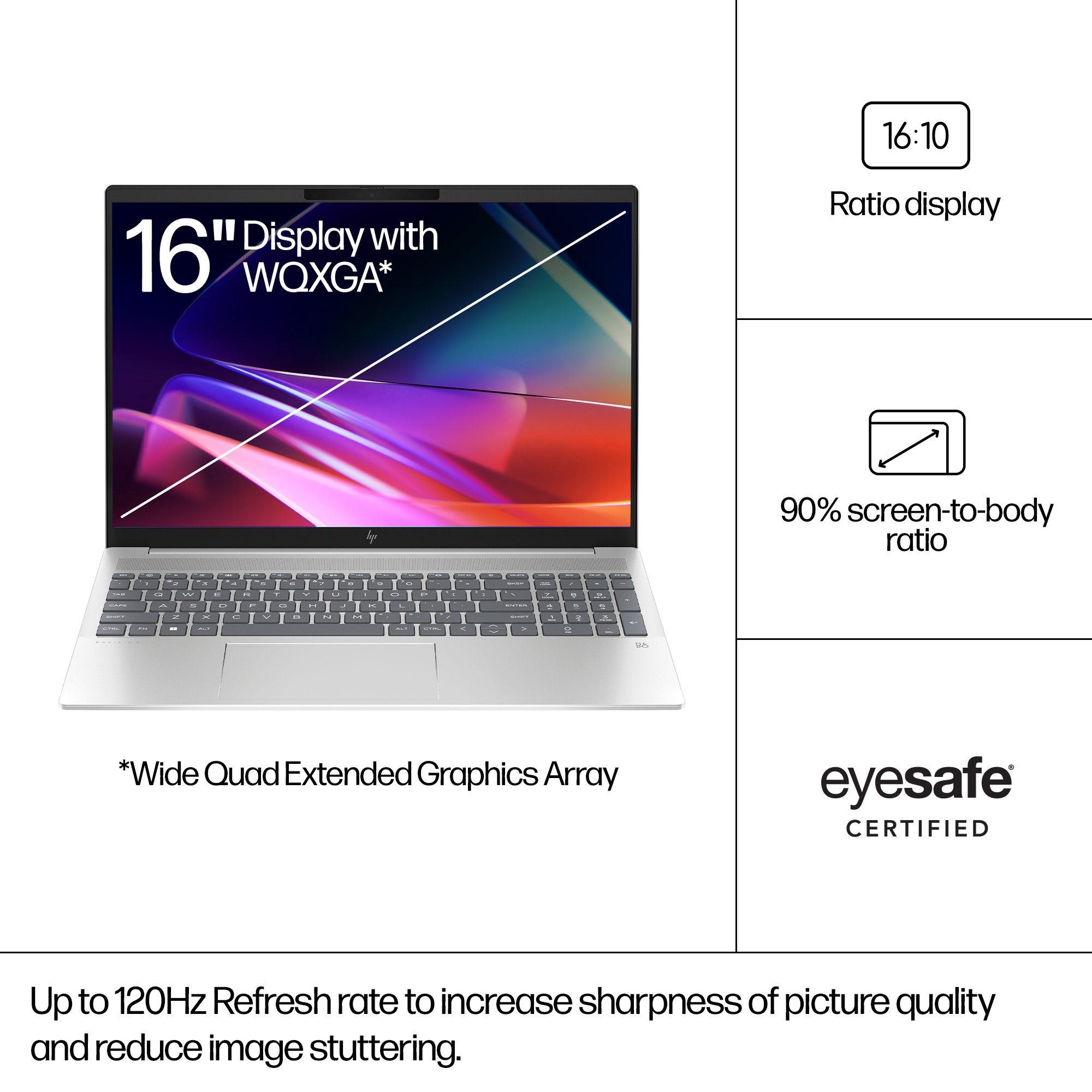 Enjoy every vibrant detail for work and entertainment on a 16" WQXGA display<sup>[3]</sup> with Eyesafe® certification<sup>[4]</sup>.