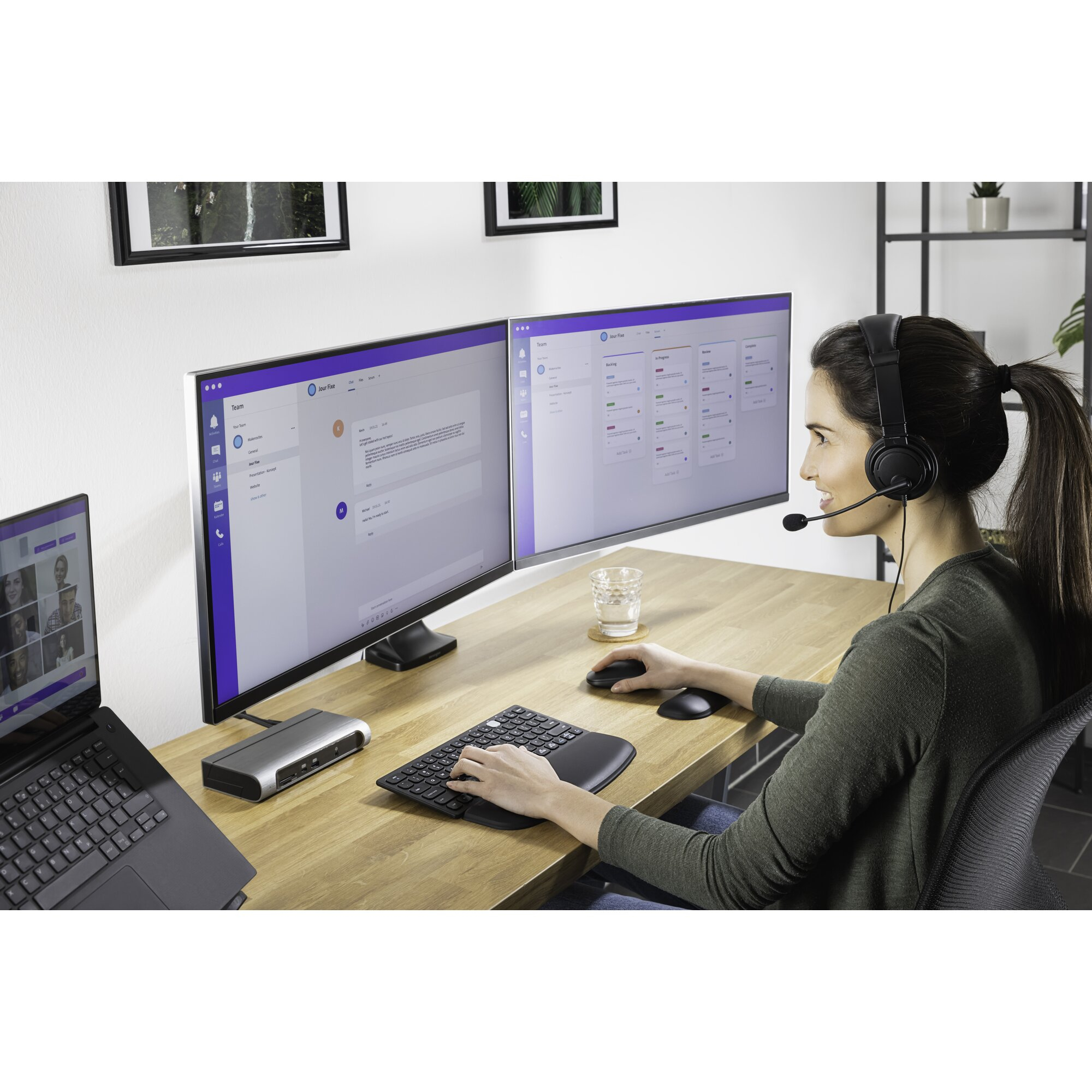 The Kensington SmartFit™ One-Touch Height Adjustable Dual Monitor Arm is stable in every position, supporting a 13′–34′′ flat or curved monitors weighing up to 9kg (19.8lbs).