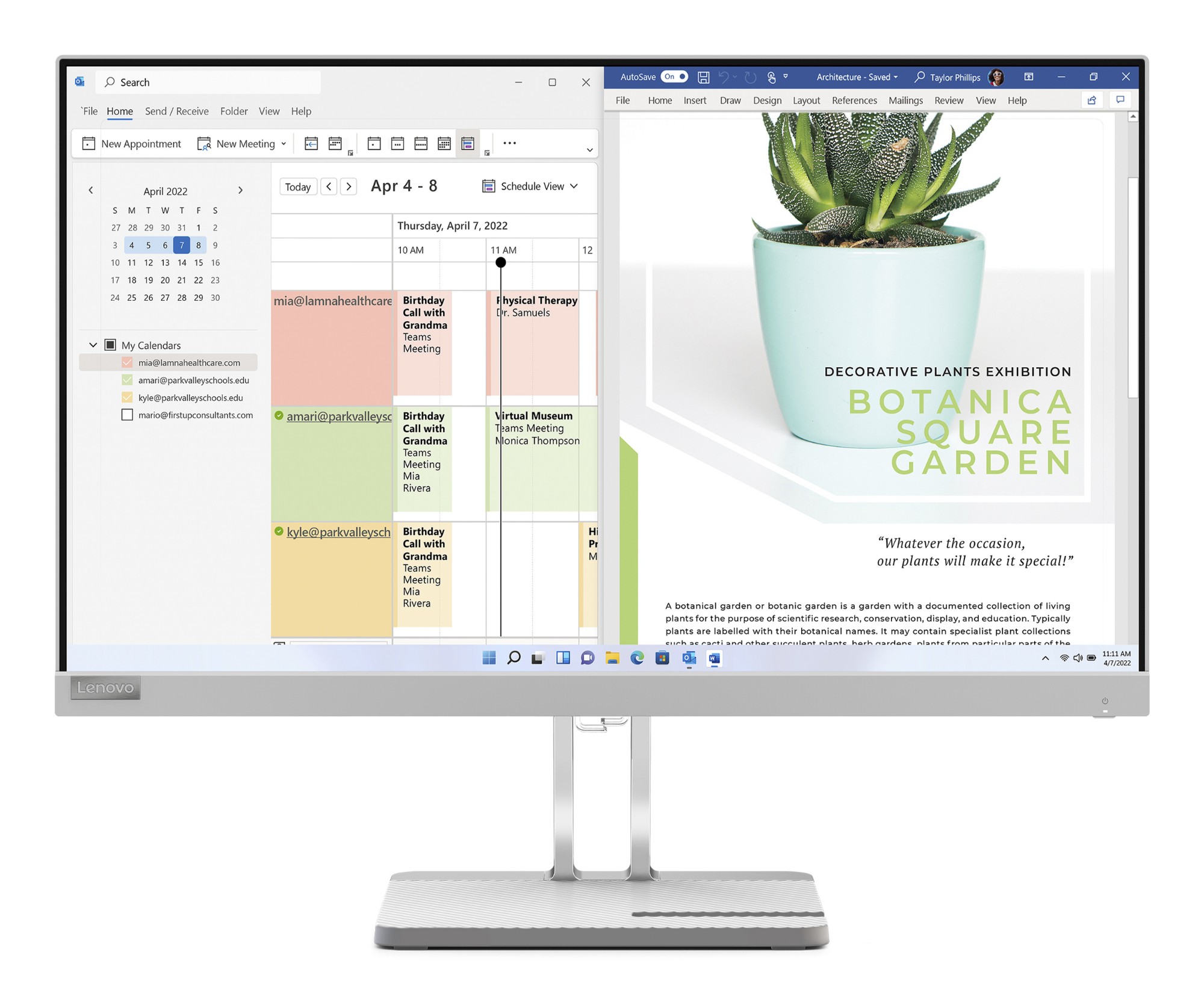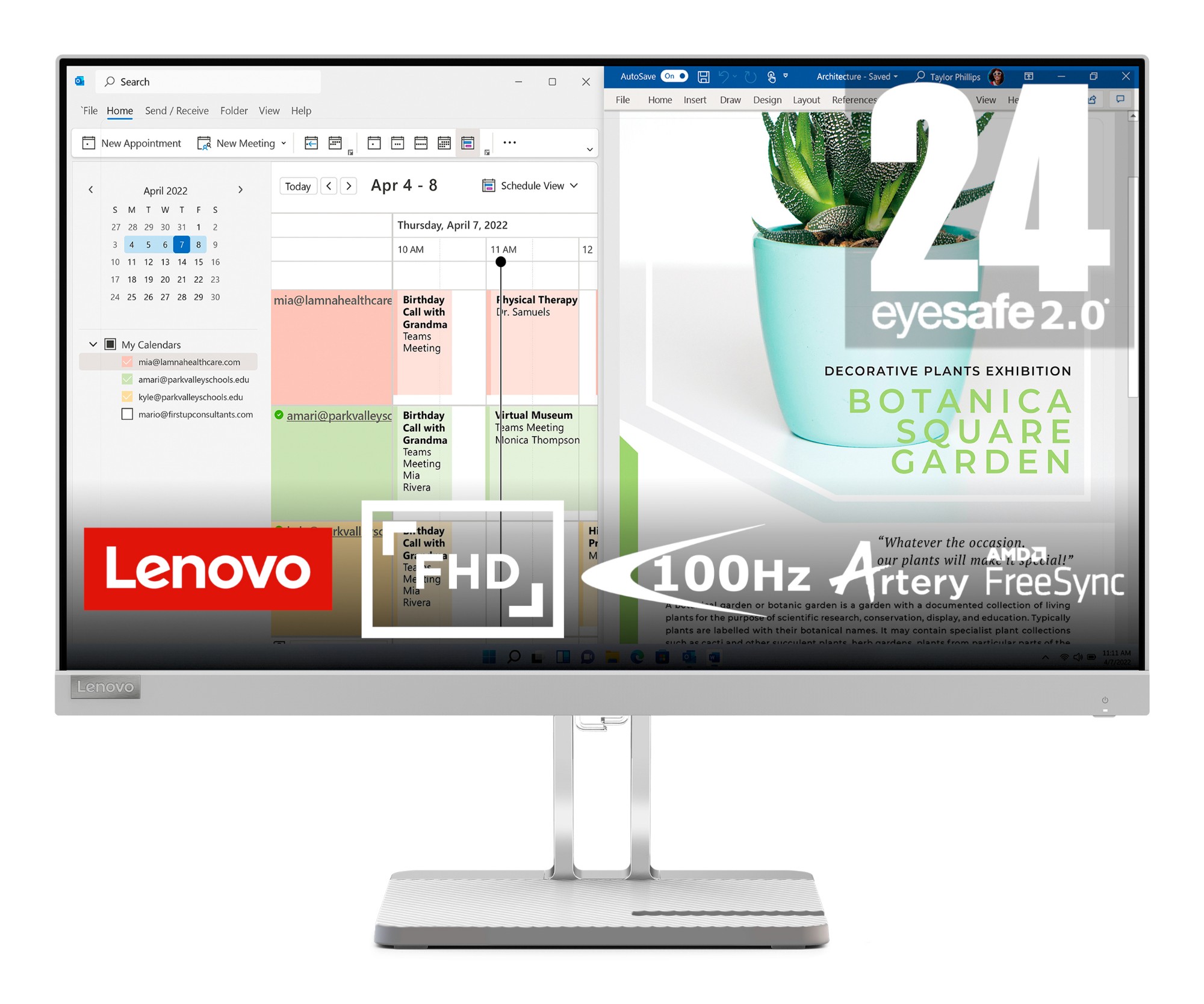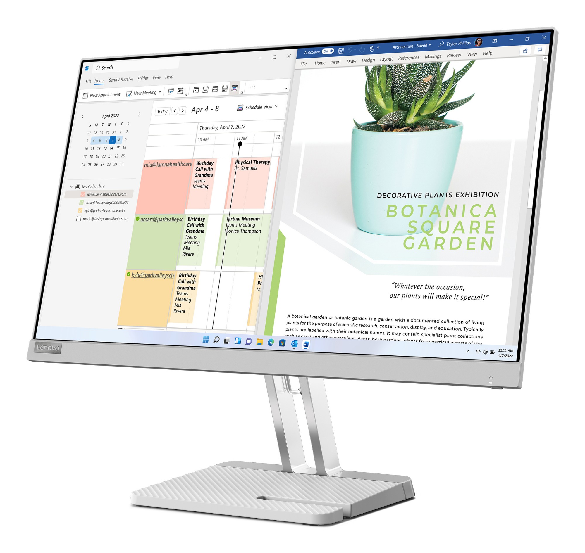 Enjoy a contemporary-looking desk setup with the monitor’s modern, stylish stand and wave pattern base design. Rid your desk of all the cable clutter with clever cable management and a phone stand built into the monitor stand. The Natural Low Blue Light technology and Eyesafe 2.0 and TÜV Hardware Low Blue Light certifications together ensure that your eyes stay protected as you work away. Whether it's changing basic display settings or accessing advanced tools, Lenovo’s Artery Software makes it easy and convenient. Made of 85% recycled resin this monitor does its best to be sustainable. If you’re looking for a one size fits all monitor, Lenovo’s L24e-40 is the option for you.