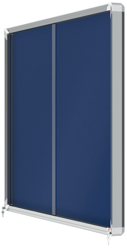 Felt lockable notice board with sliding glass doors and unobtrusive integrated corner lock. Complete with a modern stylish aluminum trim and fixed with a rail and through corner wall mounting. Excellent felt notice board surface to securely pin and display your notices. Size: 18xA4 sheets.