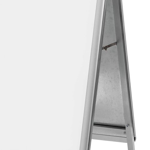 This basic A2 A-frame pavement sign is ideal for securely displaying notices, posters, advertisements and important information in storefronts, on pavements, or in high-traffic areas. Bordered by an aluminium 30mm trim, the a-board sign features a snap-open and snap-close design allowing for quick and easy hassle-free document changes - ideal for both temporary or permanent displays. The poster stand features a double sided display that maximises visibility, allowing your message to be seen from both directions and a support bar for additional stability. Lightweight and portable, the A2 pavement sign is collapsible ensuring quick and convenient storage, while the anti-glare cover protects your documents from dirt and moisture while keeping it clearly visible. The non-reflective surface is also easy to wipe clean, ensuring your message always looks its best. A2 poster frame size. Be clear with Nobo.