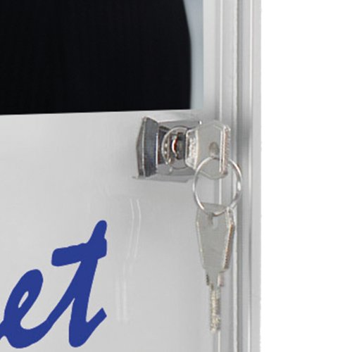 Slimline extra flat lockable glazed case for internal use. Ideal in corridors and where space is at a premium. White drywipe surface for writing and display of documents using magnets. Designed for secure display of 4xA4 documents. Supplied with wall fixings. 550x735x22mm
