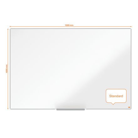 Lacquered steel magnetic whiteboard with slim and unobtrusive frame that maximises space on the whiteboard surface. A stylish whiteboard pen tray sits below the board surface, ideal for storage of whiteboard accessories. The InvisaMount™ system makes installation easy and fixings are neatly concealed behind the board. The lacquered steel magnetic whiteboard surface delivers increased erasability for moderate use. Size: 150x100cm.