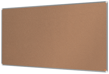 Cork notice board with a modern stylish aluminum trim and fixed with a through corner wall mounting. Excellent cork notice board surface to pin and display your notices. Size: 200x100cm.