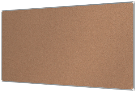 Cork notice board with a modern stylish aluminum trim and fixed with a through corner wall mounting. Excellent cork notice board surface to pin and display your notices. Size: 240x120cm.