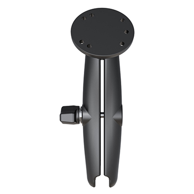 The RAM-B-103U-C consists of a 2.5" round base and LONG double socket arm that will accept 1" ball bases. The round base contains pre-drilled holes, including the universal AMPS hole pattern. Designed into the mount is a 1" diameter patented rubber ball and socket system with adjustment points at both ends of the socket arm; this with a twist of the arm knob allows for you to maneuver the mount to your optimum viewing position.