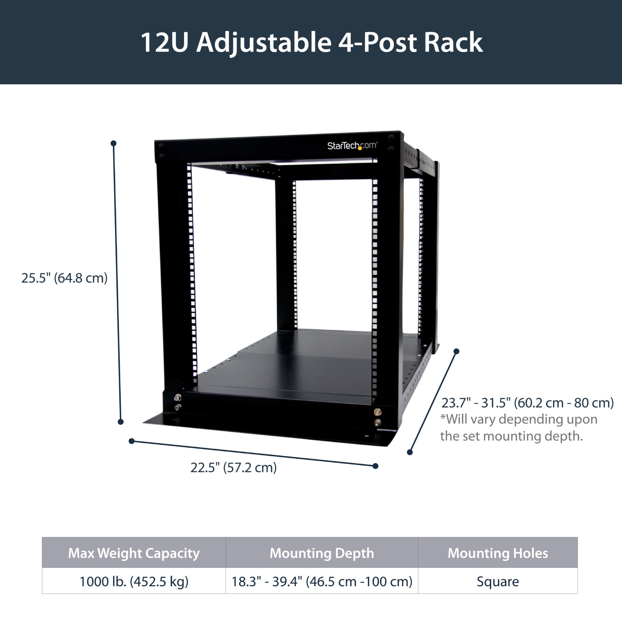 StarTech.com 12U Adjustable 4 Post Server Equipment Open Frame Rack Cabinet