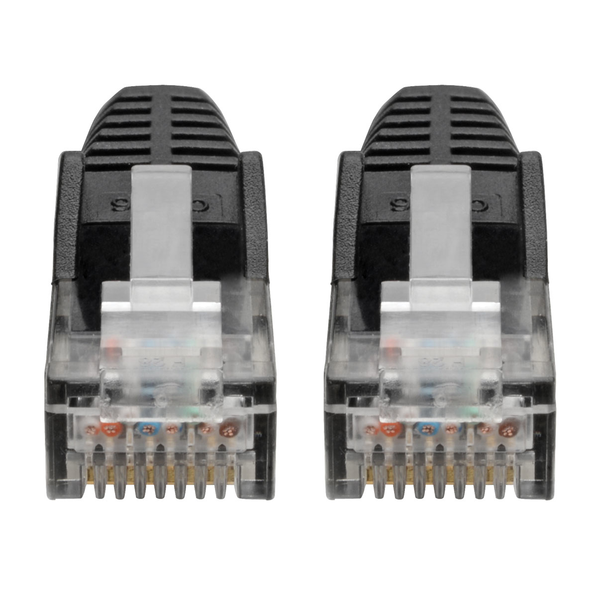 The N201-075-BK Cat6 Gigabit Snagless Molded UTP Patch Cable (M/M) is recommended for distributing data, voice and video through computers, network adapters, routers, servers, modems, hubs and switches in high-density data centers. Designed for fast transmission and excellent signal quality, this cable ensures peak performance throughout your local area network (LAN). It reduces impedance and structural return loss compared to standard 100 MHz wire.