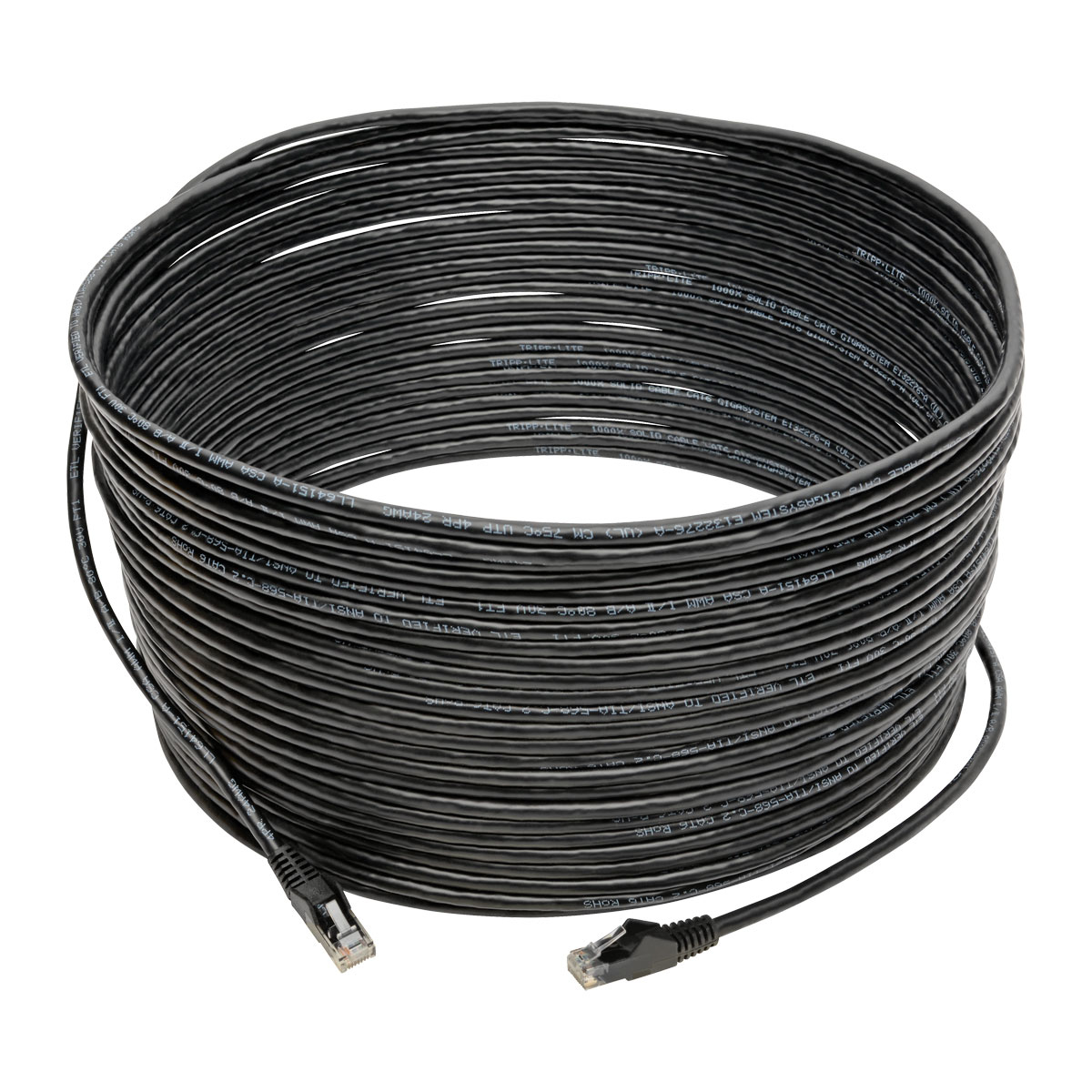 This 75-ft. (22.86 m) black cable is designed for 1000Base-T (1 Gbps Ethernet), 10/100Base-T (Ethernet), 100 Mbps TPDDI, 155 Mbps ATM, ISDN, voice, Token Ring Type 3 and EIA/TIA applications. Manufactured from 24 AWG four-pair solid UTP with a rugged PVC jacket, the N201-075-BK delivers speeds up to 550 MHz/1 Gbps and flawless signal delivery, while keeping near-end crosstalk levels to a minimum.