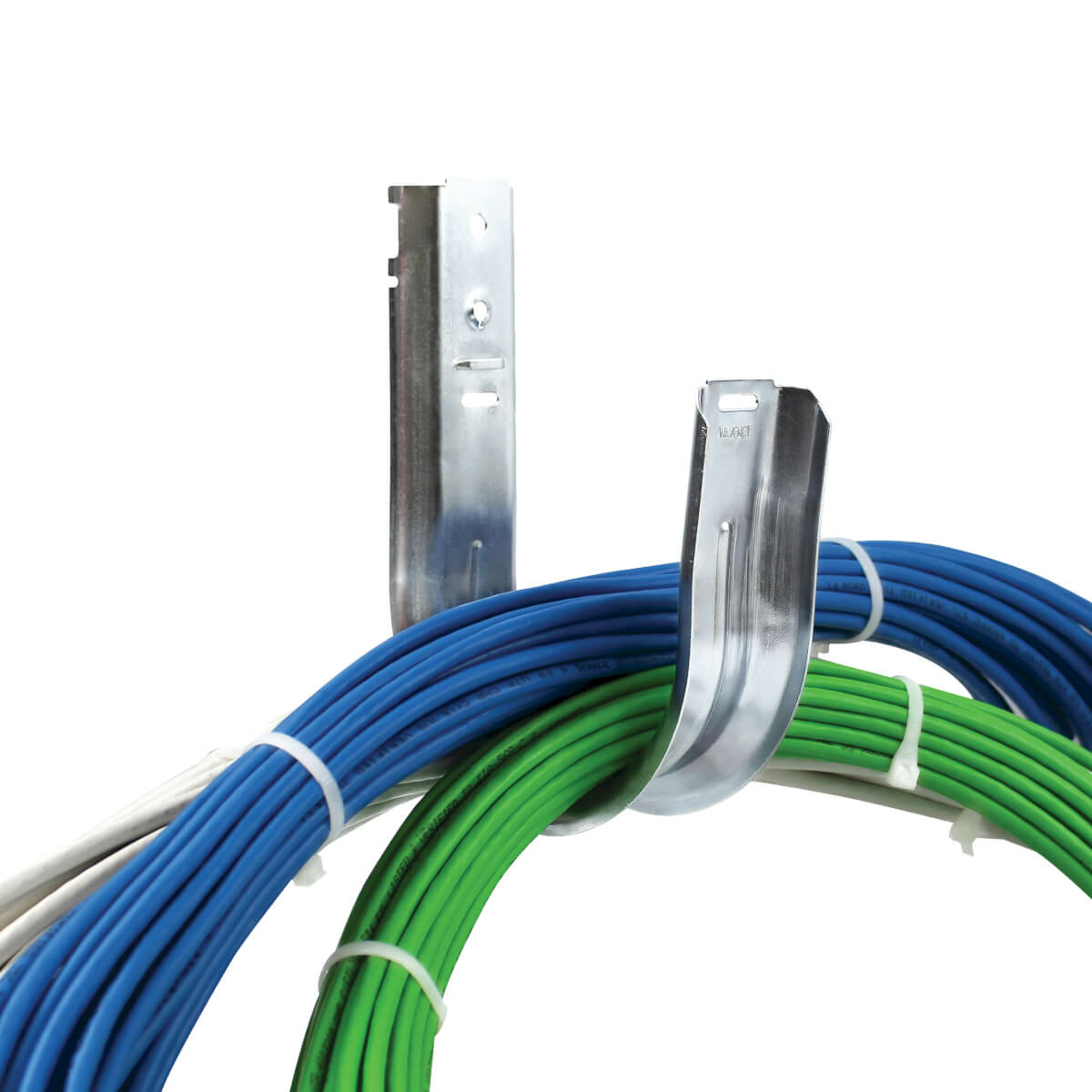Less expensive and more flexible than cable trays or ladder rack runways, these J-hooks accommodate Cat5e/6/6a, fiber optic, audio/video, coaxial and other cable types. They comply with TIA-56B-C, TIA-569-C and ISO/IEC 14763-2 requirements for structured cabling systems, making them a perfect accessory for contractors, IT staff and cable installers.