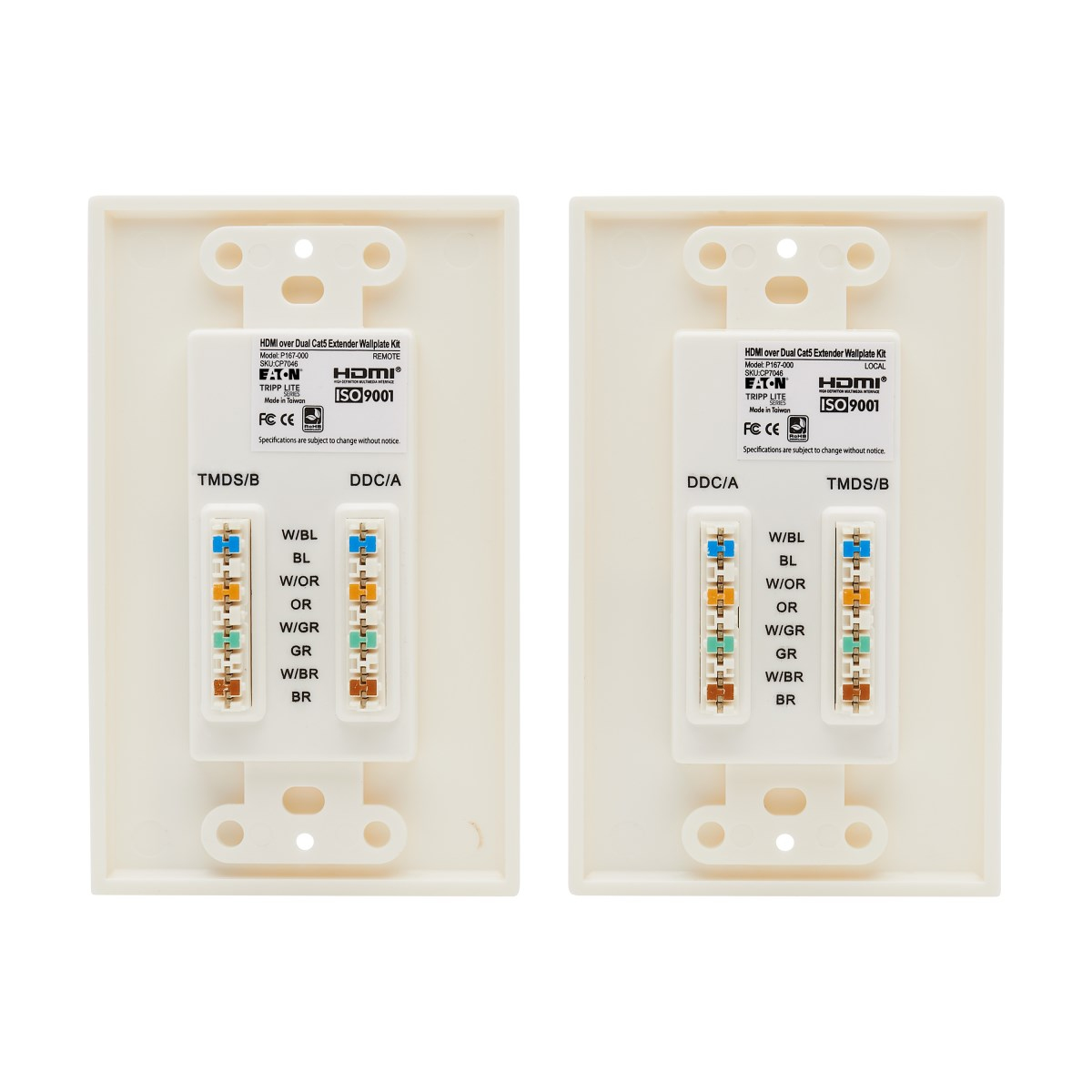 Tripp Lite P167-000 HDMI over Dual Cat5/Cat6 Extender Wall Plate Kit with Transmitter and Receiver, TAA