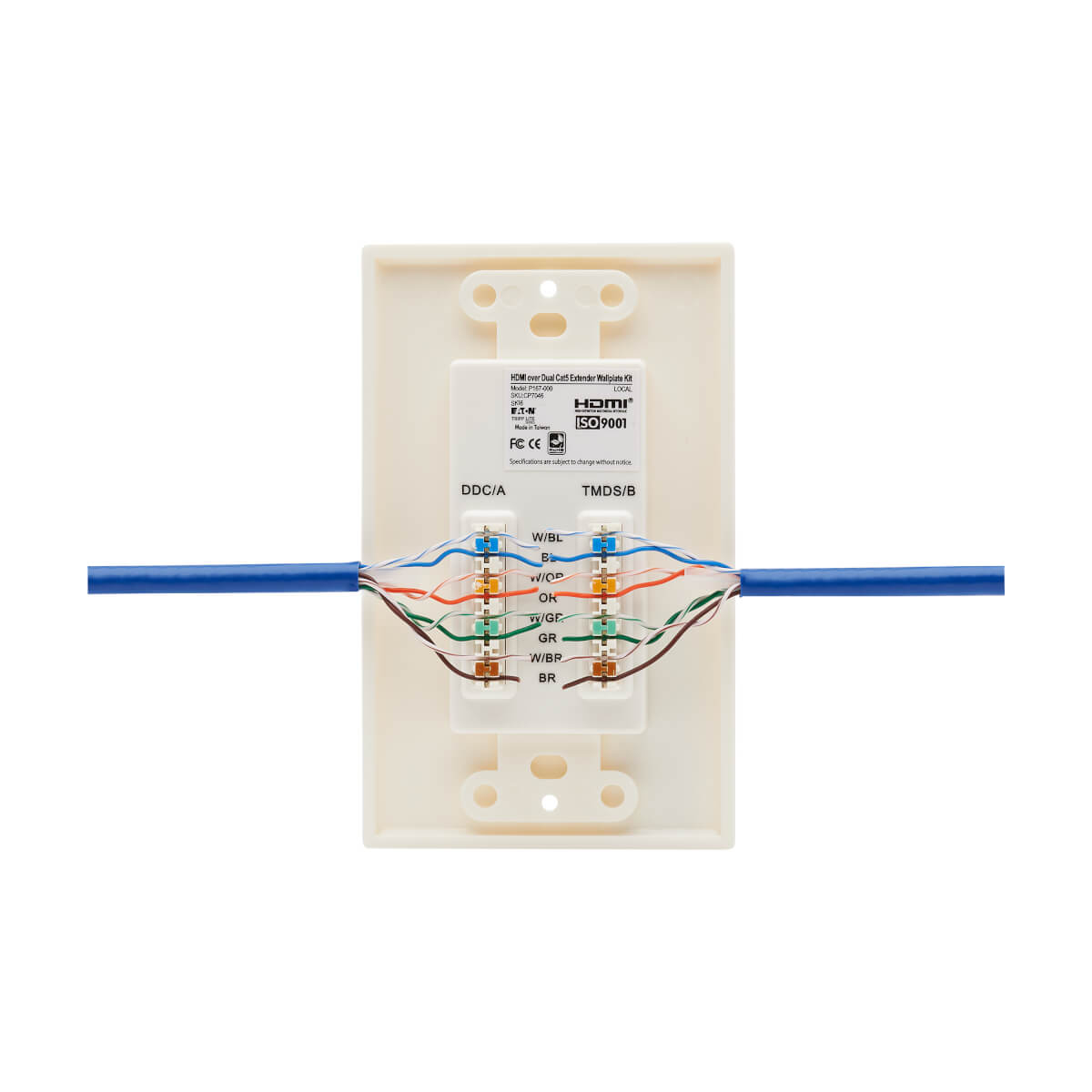 This HDMI Over Dual Cat5 Extender Wall Plate Kit is the perfect solution for those who need to extend a HDMI signal over a long distance over two Cat5/6 cables.