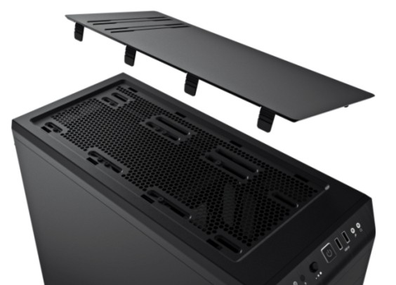 The Pure Base 600 top cover is adjustable allowing choice between boosting your system’s cooling or silence. You can close it for more silence, open it partially for more exhaust or leave it open to mount a water cooling radiator.
