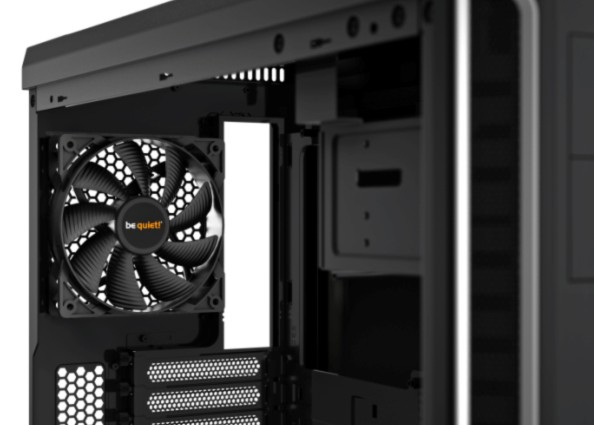 Two pre-installed Pure Wings 2 fans with nine airflow-optimized fan blades reduce turbulence and increase air pressure: 120mm at the rear, 140mm at the front. Permits up to four additional cooling fans.